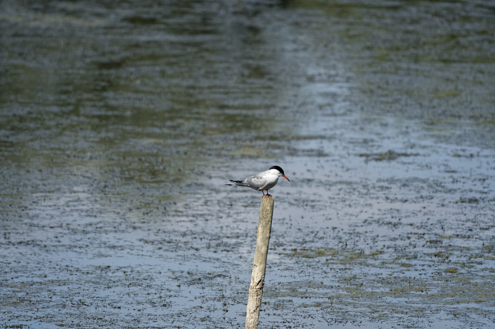 The wood sandpiper's understudy has had to step in. This bird at Marston Vale, is disadvantaged by the lack of colour. The bird was near, but not with, the large flock of other cormorants.